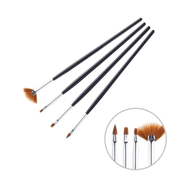 - Komplet 4 profesjonalnych pędzelków do zdobień o różnych kształtach.