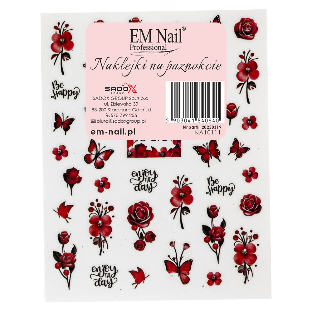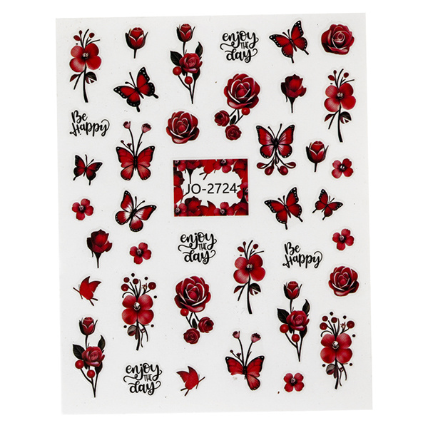 • Nagelsticker mit einem Hauch von Charme in Form von roten Blumenmotiven und Schmetterlingen, die dein Design vervollständigen.