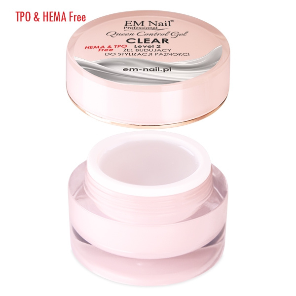 Queen Control Gel Level 2 - Clear, to najnowszej generacji, bardzo trwały żel budujący o półciekłej, miodowej konsystencji. Charakteryzuje się niezwykle samopoziomującą gęstością, która znacząco wpływa na komfort i przyśpieszenie czasu pracy. Specjalnie opracowana formuła ułatwia precyzyjne rozkładanie żelu, który pozostaje w miejscu aplikacji.Queen Control Gel Level 2 są doskonałe do przedłużeń na szablonie na dowolną długość, budowy szkieletu, przedłużania na tipsach oraz jako podstawa do dalszej stylizacji. Praca nimi jest bardzo wygodna, żel po rozłożeniu i utwardzeniu nie wymaga piłowania. Mogą być także stosowane do utwardzenia naturalnej płytki paznokcia. Żele z serii Queen Control Level nr 2 są przeznaczone dla stylistek o każdym poziomie zaawansowania.