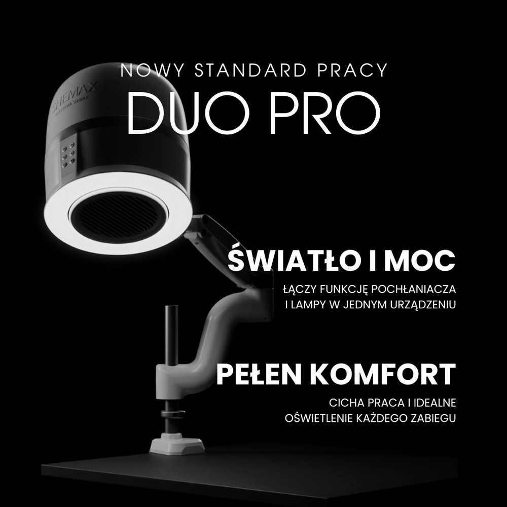 - DUO PRO SHEMAX – innowacyjny pochłaniacz z lampą LED dla stylistów paznokci. Łączy skuteczną filtrację pyłu i efektywne oświetlenie, podnosząc standardy pracy i komfort w salonie. Wybierz profesjonalizm SHEMAX i doświadcz rewolucji!