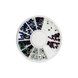 Cyrkonie opalizujące czarne, srebrne, białe w karuzelce