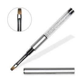 Pędzelek do żelu nr 4 - prosty, srebrny, z kryształkami